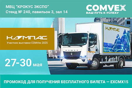 От имени официального производителя и дистрибьютора грузовых а/м Компас в России мы рады пригласить вас на международную выставку коммерческих автомобилей «COMvex 2025».