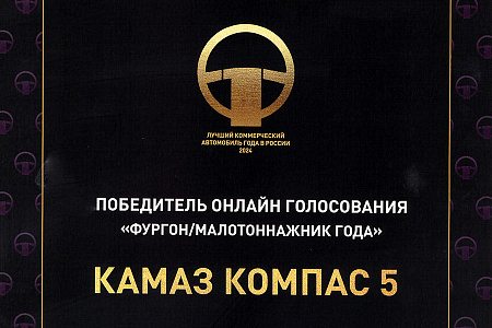 Самый молодой представитель семейства грузовиков КАМАЗ Компас стал победителем онлайн голосования в номинации «Фургон / малотоннажник года» конкурса «Лучший коммерческий автомобиль года в России 2024».